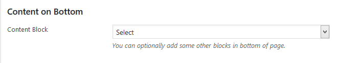- Content on Bottom - These options allows you to add content blocks in bottom of page by choosing in "Additional Content Block". Blocks need to add in "Blocks" post type.