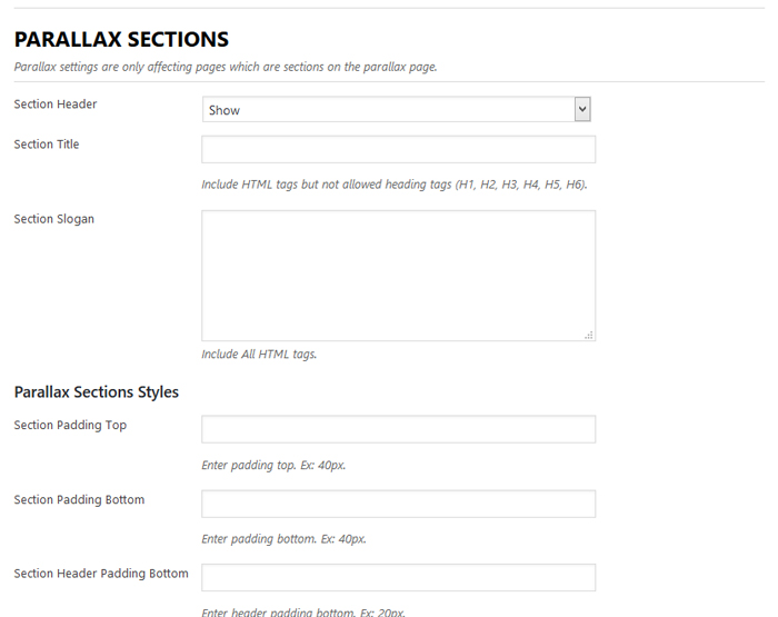 - Parallax Sections – These options allows you to customize current page to one page section.