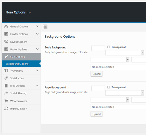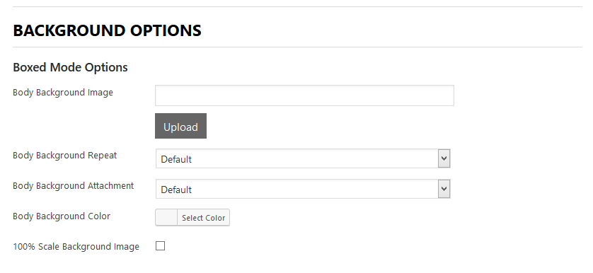 - Background Options – These options allow you to customize body background and page backgrounds.