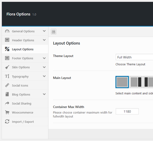 - Layout Options – In Layout options, you can choose the theme layout, page layout and select the maximum width for fullwidth and boxed layout.
