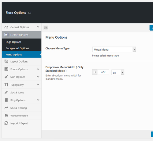 - Menu Options – In Menu options, you can choose menu type and dropdown menu settings.