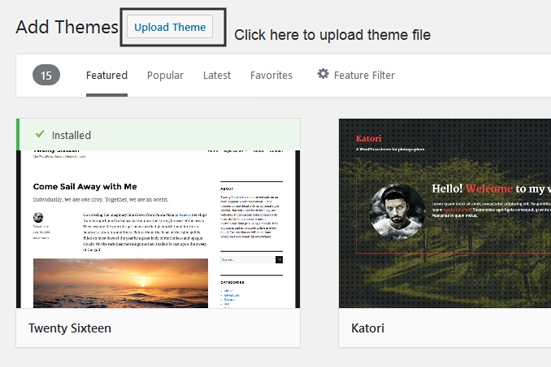 - Click on Upload Theme button at the top of the screen.